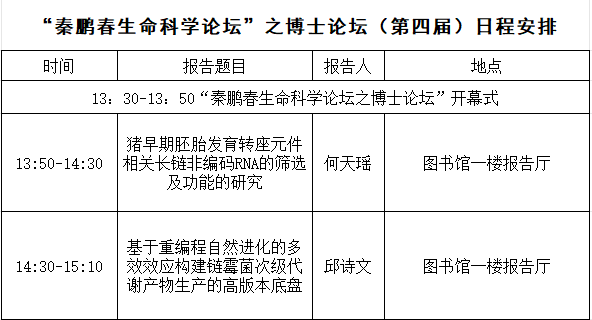 为了传承和发扬秦鹏春先生敢为人先的创新意识和锲而不舍的科研精神,进一步推动我院研究生学风建设,发挥优秀研究生榜样力量,营造良好、浓厚的学术氛围,提高我院研究生培养质量,2007so太阳集团拟于2024年6月13日举办“秦鹏春生命科学论坛”之博士论坛(第四届)。报告人为经各二学科推荐和学院选拔的2024届优秀博士毕业生。论坛以学术会议形式,采取线下方式进行。