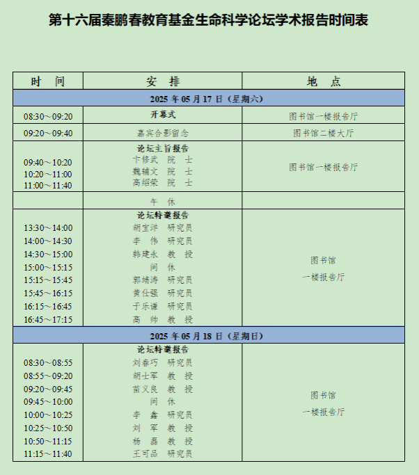 (一)开幕式、论坛主旨报告及特邀报告(5月17日,星期六)