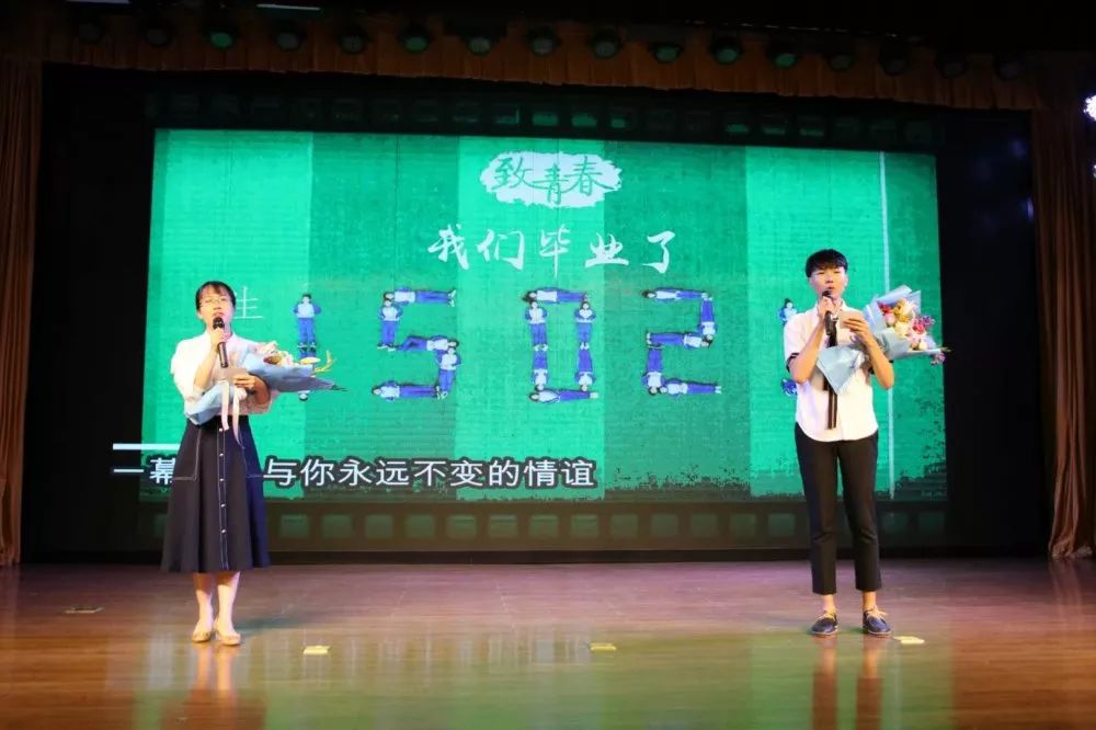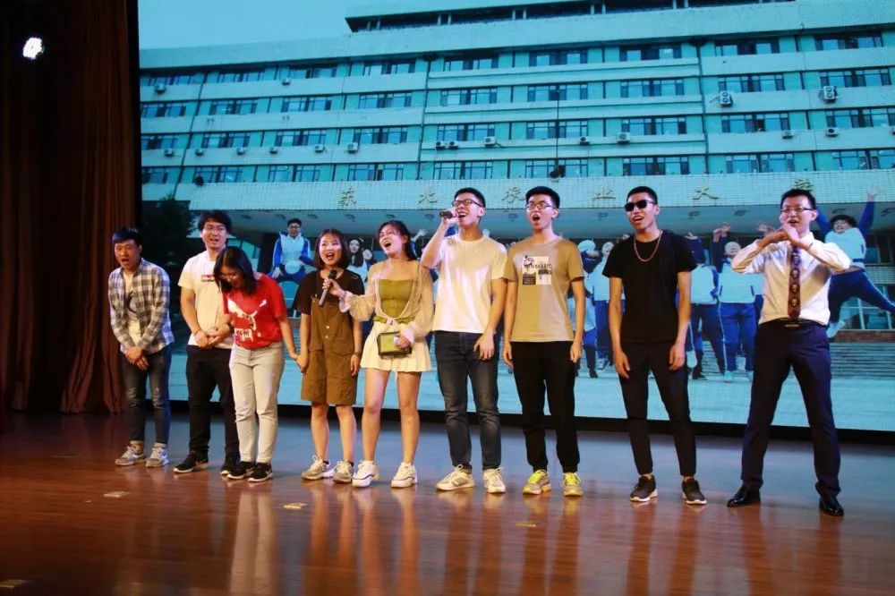 本科毕业班辅导员王梦带来的歌词改编版《小幸运》以及全体辅导员带来的一首《光阴的故事》使现场气氛达到最高峰,让同学们带着微笑和泪水沉浸在大学四年美好的回忆里。毕业生班委代表的原创诗朗诵诉说着毕业生们的四载风华。晚会尾声,由生命青年传媒中心与毕业生历时一个半月联合创作的MV《我的未来不是梦》首播,道出了所有人对2019届全体毕业生最真挚的祝福。伴随着《我和我的祖国》和《祝你一路顺风》的唱响,毕业生晚会圆满落下帷幕。