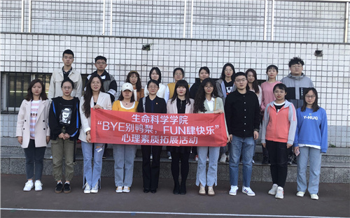 研究生学生干部同时面临着学业与生活、科研与工作等多方面压力,使这一部分学生更容易产生焦虑、紧张等负面情绪。4月25日下午,在体育场组织开展了以“BYE别鸭梨,FUN肆快乐”为主题的心理素质拓展活动,全体研究生学生干部参加活动,研究生辅导员孙珠红、赵彩桐出席活动。
