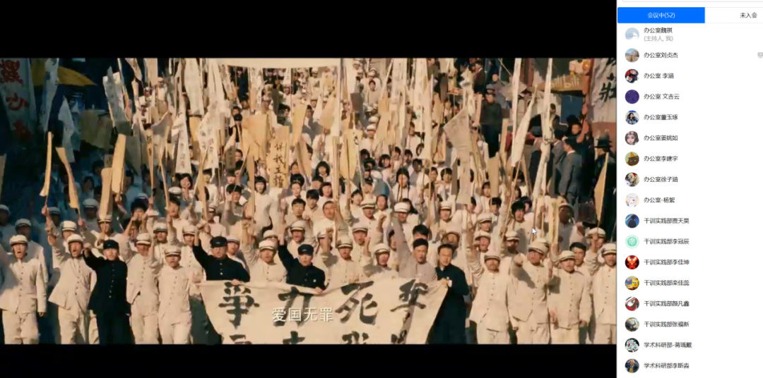 观影结束后,参与者们进行了热烈的讨论,分享了各自的观影体验和心得体会。大家纷纷表示,电影激发了他们的爱国情感,启发了他们对共产主义思想的理解和认识。最后,团委办公室部门负责人为同学们答疑解惑,深入探讨了电影所包含的思想内涵,共同回顾了电影所展现的历史事件。