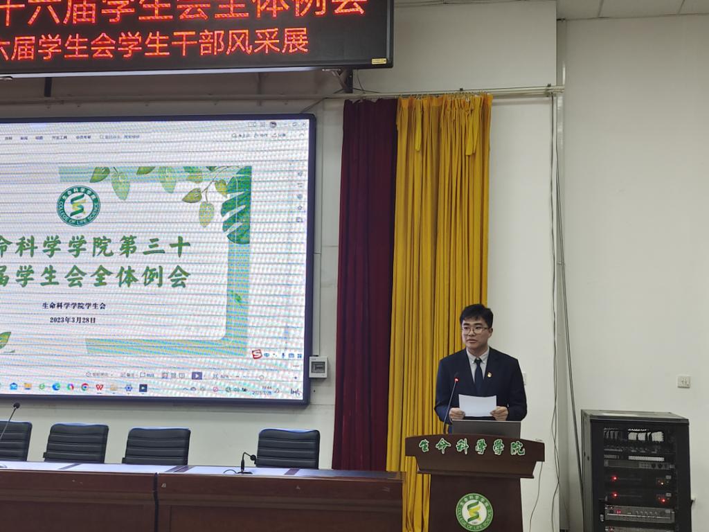3月28日晚,2007so太阳集团学生会于实验楼举行全体例会暨学生干部风采展,出席本次会议的有学生会秘书长杜壮老师、学生会主席团及各部门部长。本次会议由学生会主席团成员姜一凡主持。