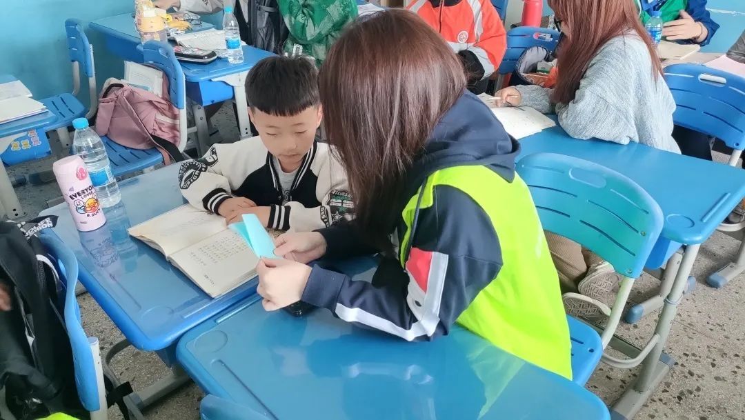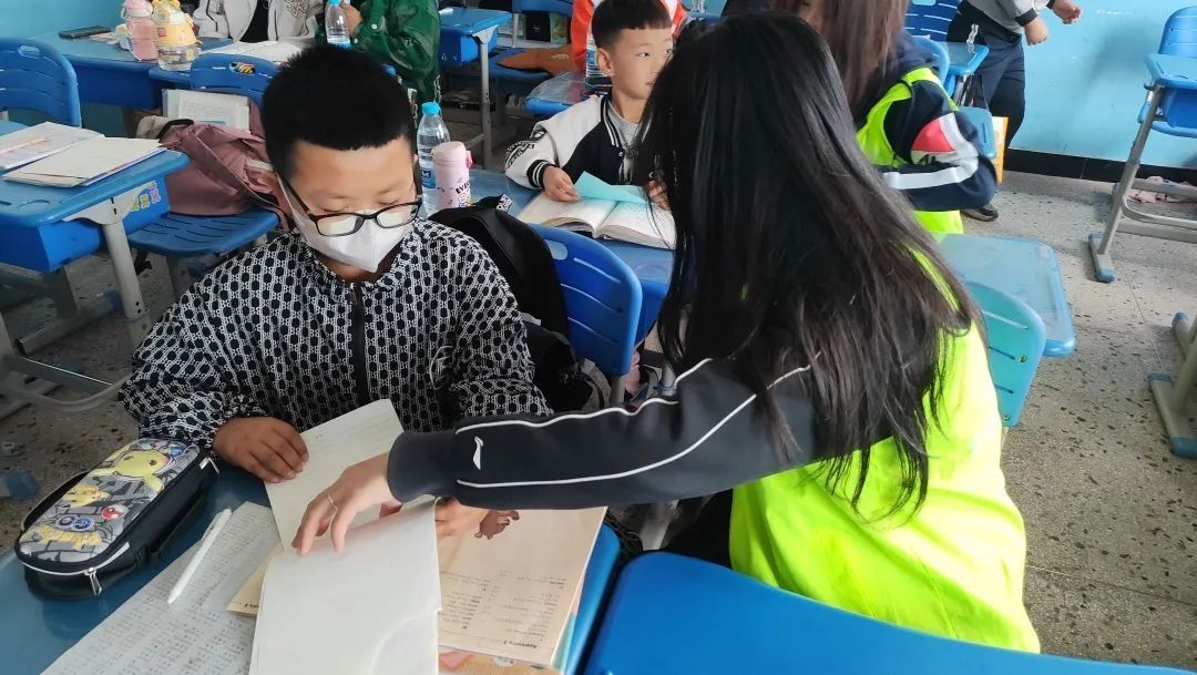支教过程中,志愿者们首先来到了一楼的教室,给孩子们辅导周末作业,帮助他们预习下一周与需要学习的内容。志愿者与孩子们一起朗读英语单词,练习巩固数学习题,激发了孩子的学习兴趣,有助于提高孩子的学习成绩。