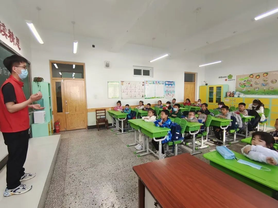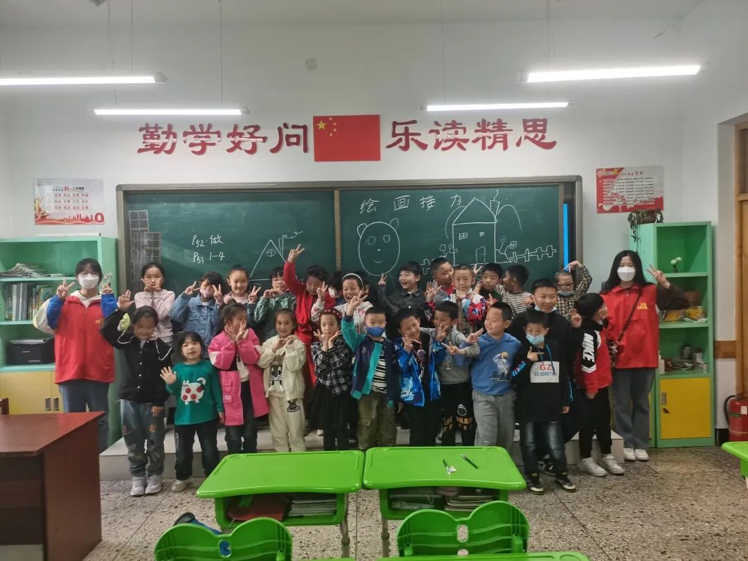 支教过程中,一部分志愿者来到了二年级一班,通过情景演绎的形式为同学们科普了新冠病毒二次感染的原理及防护方法,形象而具有趣味性。此后又带领同学们参与了绘画接力、标本辨识、魔术及歌曲欣赏等活动,大家积极展示、踊跃发言,充分发挥自己的想象力和创造力。在最后的答疑解惑阶段,同学们异想天开,所问所思从宇宙至蜉蝣,从有机到无机,从过去到未来;天马行空恣意飞扬;如果诚如儒贝尔所说“想象是灵魂的眼睛”,那么这些孩子一定拥有一双澄澈的双眼。整个课堂课堂期间充满欢笑与快乐,这既是同学们收获知识的快乐,也是志愿者们实现自我价值的愉悦,是真正意义上的教学相长也。