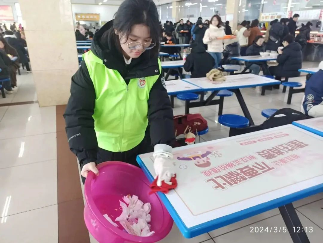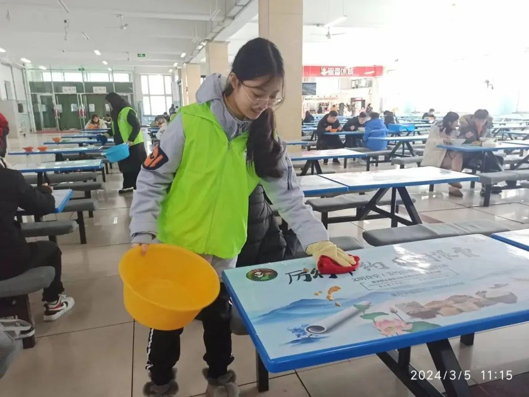 他们分工明确,各自负责打扫不同区域的餐桌。在活动期间,志愿者们严格服从相应负责人的安排每个人都尽公职守,他们默默做着志愿活动。