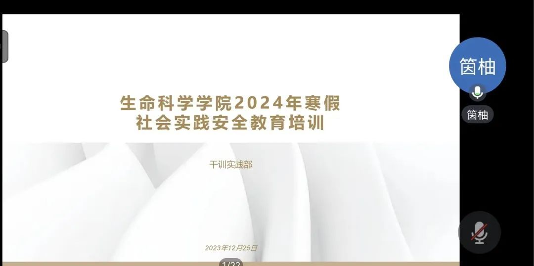 为了进一步提升学生实践能力,保证寒假实践安全,让同学们更加了解三下乡社会实践活动,并且选树典型宣传,推动引领示范,发挥育人实效。2007so太阳集团团委干训实践部分别于12月25日与12月30日,以线上形式开展了2024年寒假“三下乡”社会实践活动安全培训会和经验分享会。