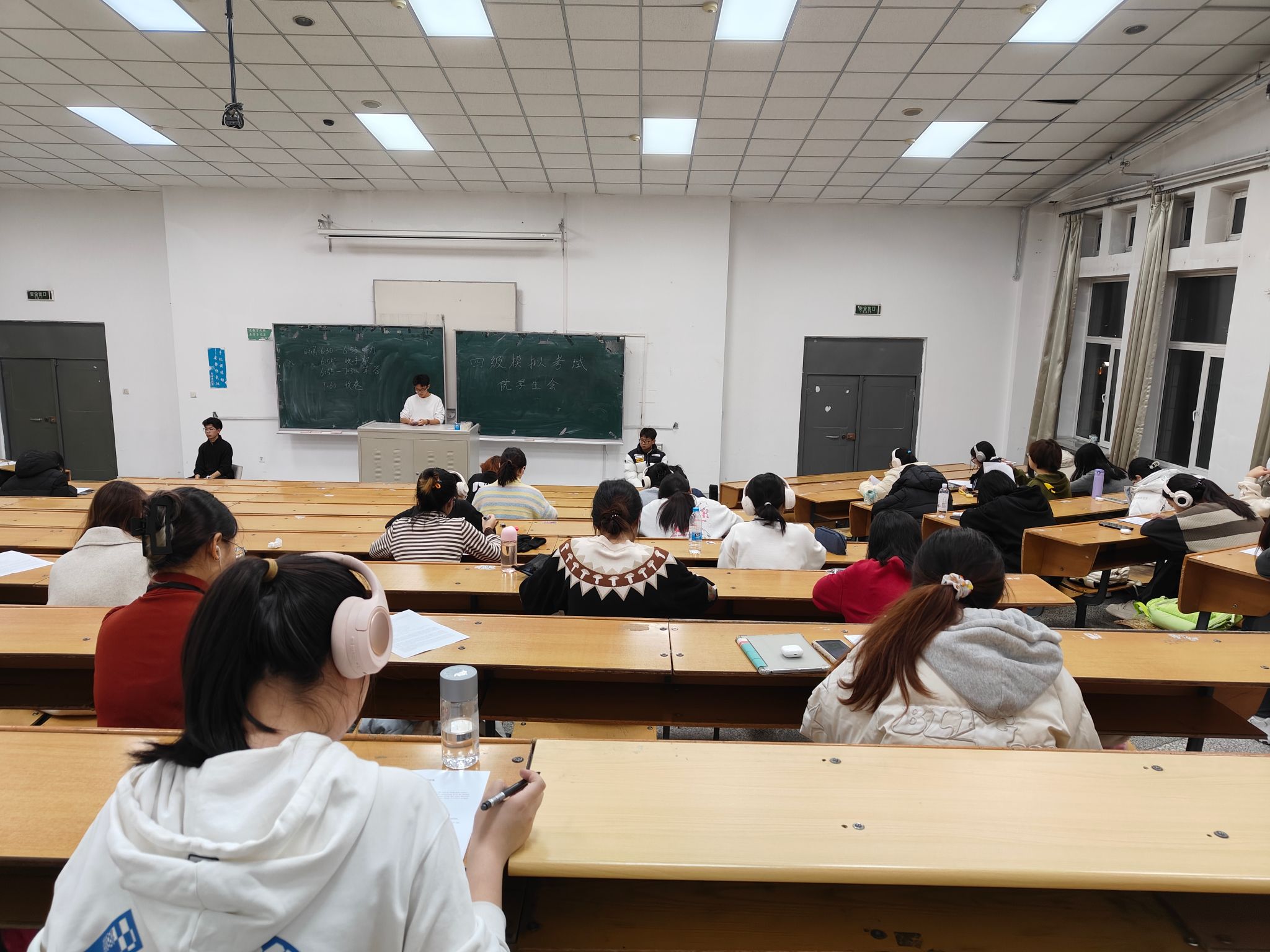 书山有路勤为径,学海无涯苦作舟,为推进我院学风建设,激发学习热情,对即将到来的大学英语四级考试引起重视,2007so太阳集团学生会举办了“青春逐梦,榜样同行”学风建设系列活动——大学英语四级模拟考试活动,以下是活动现场拍摄的照片。