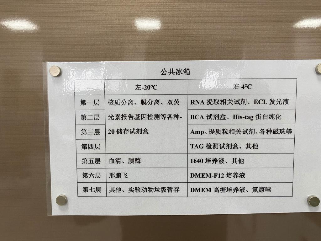 施喜军表示:“物归原处既是习惯养成,也是育人理念。学生养成良好科研习惯,也是学院教育成功的一种体现。”学院重视实验室的环境育人工作。学院优秀前辈的介绍频频出现在楼梯墙和实验室中。一些实验室对近期发表的高水平论文或最新项目成果进行展示,为学生树立目标,鼓励其前行。走廊中展示生物领域科学家的生平事迹和突出贡献,增加学科氛围感,反映学科特色。学生党建知识和学生支部活动的精彩瞬间,也会在实验区域的醒目位置展示。这些无声宝藏静静浸润着学生,也让学院的管理充实着活力。