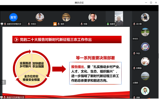 会后,为进一步深入学习、全面贯彻党的二十大精神,施喜军从九个方面进行党的二十大精神宣讲。他指出,党的二十大是在全党全国各族人民迈上全面建设社会主义现代化国家新征程、向第二个百年奋斗目标进军的关键时刻召开的一次十分重要的大会,学习贯彻党的二十大精神是当前和今后一个时期学院党委的首要政治任务。施喜军强调,学院要全面落实党的二十大提出的新任务、新要求、新举措,尤其要在办好人民满意的教育、奋力谱写学校与学院高质量发展新篇章上要学习在前、研究在前、实践在前。党员领导干部要充分发挥示范引领作用,提高政治站位、锤炼过硬本领、发扬斗争精神、强化使命担当,带领全院教职工以坚定的理想信念、昂扬的精神状态、务实的工作作风把思想和行动统一到以中国式现代化全面推进中华民族伟大复兴的重大使命上来、把智慧和力量凝聚到学校世界一流学科和省高水平大学建设的生动实践上来。
