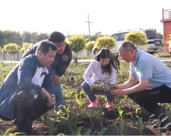 在大庆市龙凤镇刘高手村,调研组实地查看了嗜/耐盐微生物菌剂成果用于盐碱地种植玉米试验示范基地,姜巨全教授介绍了该成果研发以及近几年在省内外试验示范情况;龙凤区农业农村局、龙凤镇有关同志和农户对此项成果前期成效给予了肯定并对未来深入合作表达了强烈意愿。