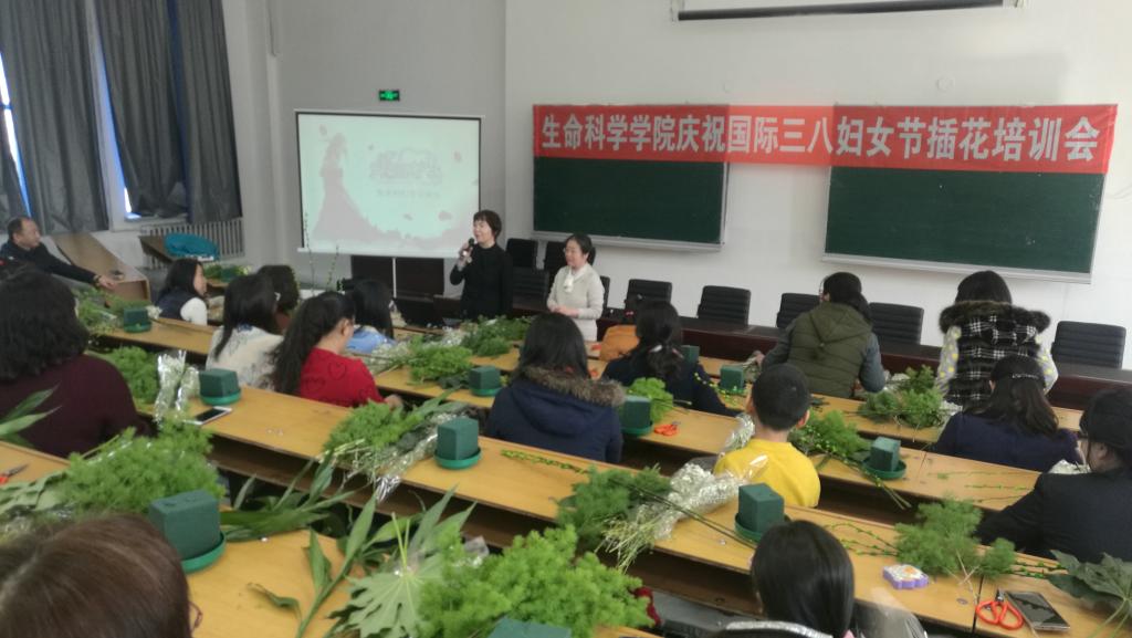 3月8日下午,2007so太阳集团工会于实验楼三楼会议室举办庆祝国际劳动妇女节插花培训会,活动由院党委副书记、工会主席高放主持,学院党委书记施喜军、院长栾非时、院工会副主席、工会小组长及女教职工参加。本次活动邀请园艺学院刘慧民教授为大家讲解插花的艺术。