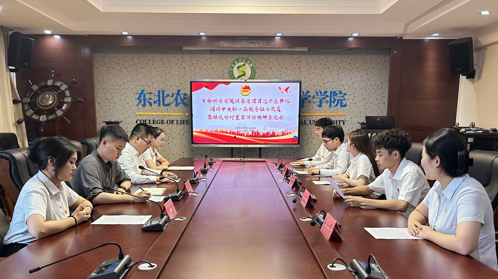 座谈会上,参会代表们首先观看了习近平总书记同团中央新一届领导班子成员集体谈话的学习视频。随后,参会学生结合视频内容和自身学习成果依次进行发言。“优秀共青团干部”硕士研究生娄佳欣表示,作为研究生要积极投身于科研活动中。正如校友周琪院士所言,永远不要让核心技术的壁垒成为我们强国道路上难以逾越的鸿沟。“优秀共青团干部”硕士研究生杨春博表示,新一代青年要勇于改革创新。成功的路上是不怕失败的,科技的进步是需要新时代青年不懈努力的。“优秀共青团干部”郭禹含表示,习近平总书记的重要讲话和殷殷嘱托既是关爱和重视,更是激励和鞭策,身为新时代青年要不断追求进步,在中国式现代化建设中挺膺担当。“优秀共青团干部”戚承瑾表示,党旗所指就是团旗所向,党的奋斗主题就是团的行动方向。作为学生团干部要讲纪律守规矩,树立团干部的良好形象。“优秀共青团干部”王文皓表示,堪当民族复兴重任的时代新人要以坚定的理想信念,筑牢信仰之基、把稳思想之舵、补足精神之钙,做有志气的青年。“优秀共青团干部”王玮琦表示,作为共青团干部要真正做到服务青年和凝聚青年,不忘初心跟党走,不断巩固和扩大党的青年群众基础。“优秀共青团员”硕士研究生刘勇强表示,应当励志让科研服务于国家发展,服务于社会进步,服务于人民群众的幸福生活。扎实肯干,把科研做到田间。“优秀共青团员”任钧表示,作为团员的我们必须树立共产主义远大理想,坚定不移听党话、跟党走,切实肩负起新时代新征程党赋予的使命任务,为推进强国建设、民族复兴伟业接续奋斗。
