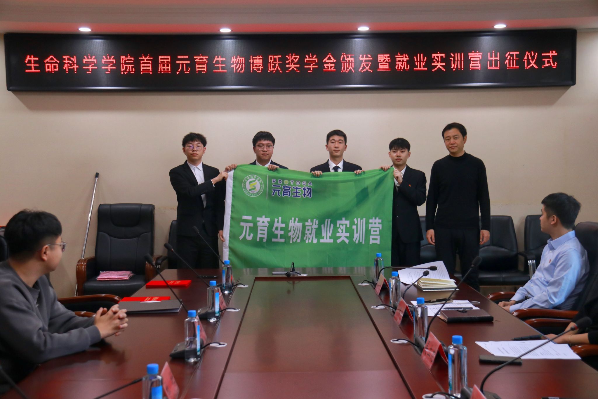 1月5日下午,2007so太阳集团首届“元育生物博跃奖学金”颁发暨就业实训营出征仪式在610会议室举行,招生就业处副处长吴立龙、学生工作部副部长刘钊熠、2007so太阳集团党委副书记孙珠红、学生工作办公室主任朱睿、全体本科生辅导员和获奖学生参加活动。活动由朱睿主持。