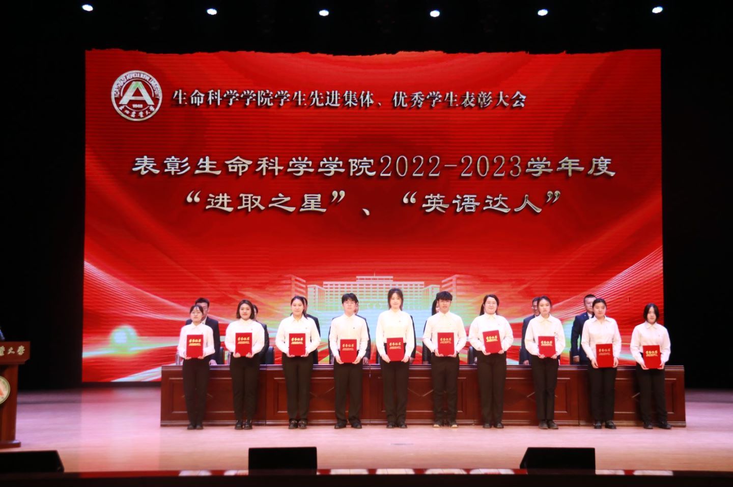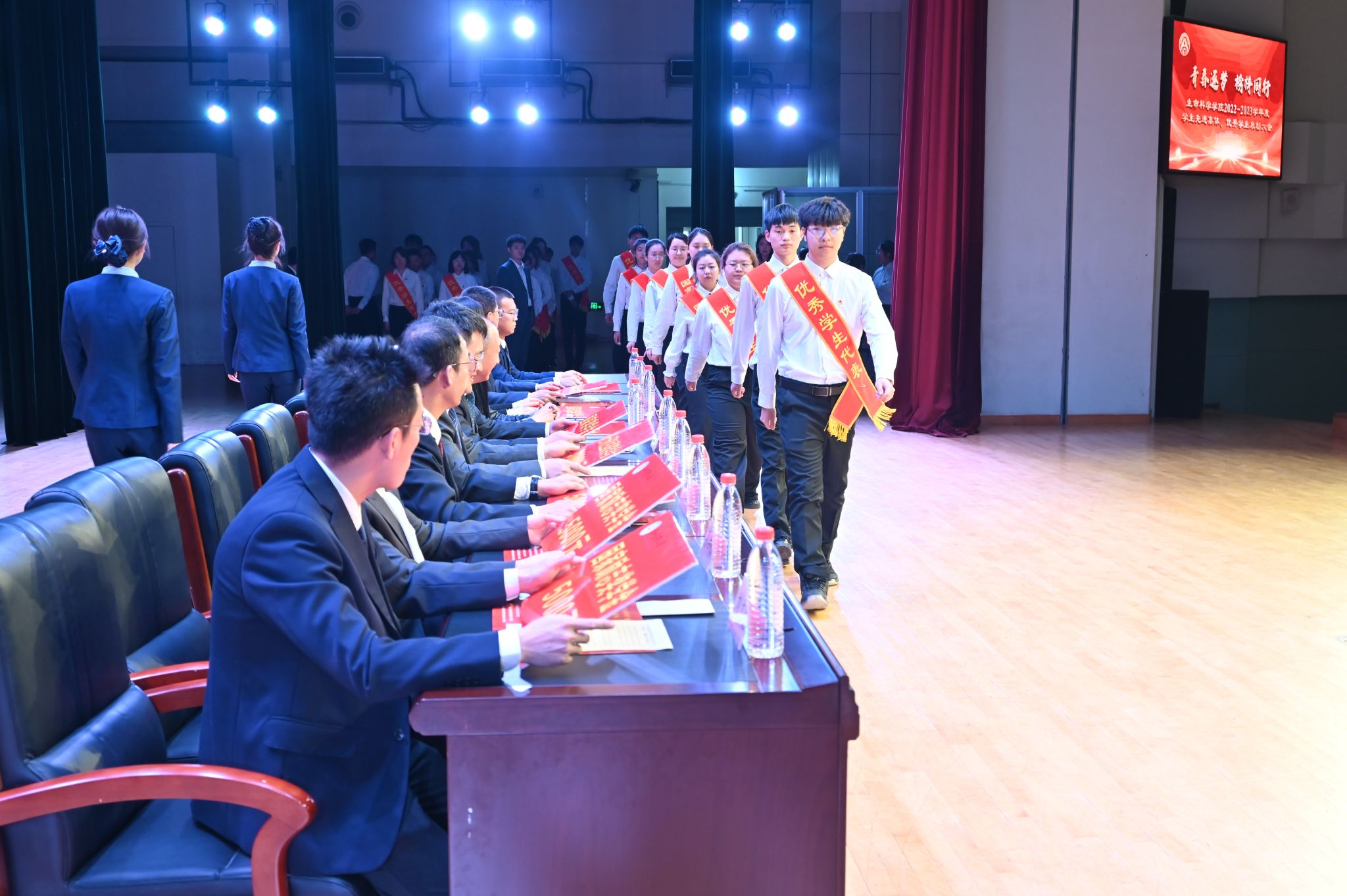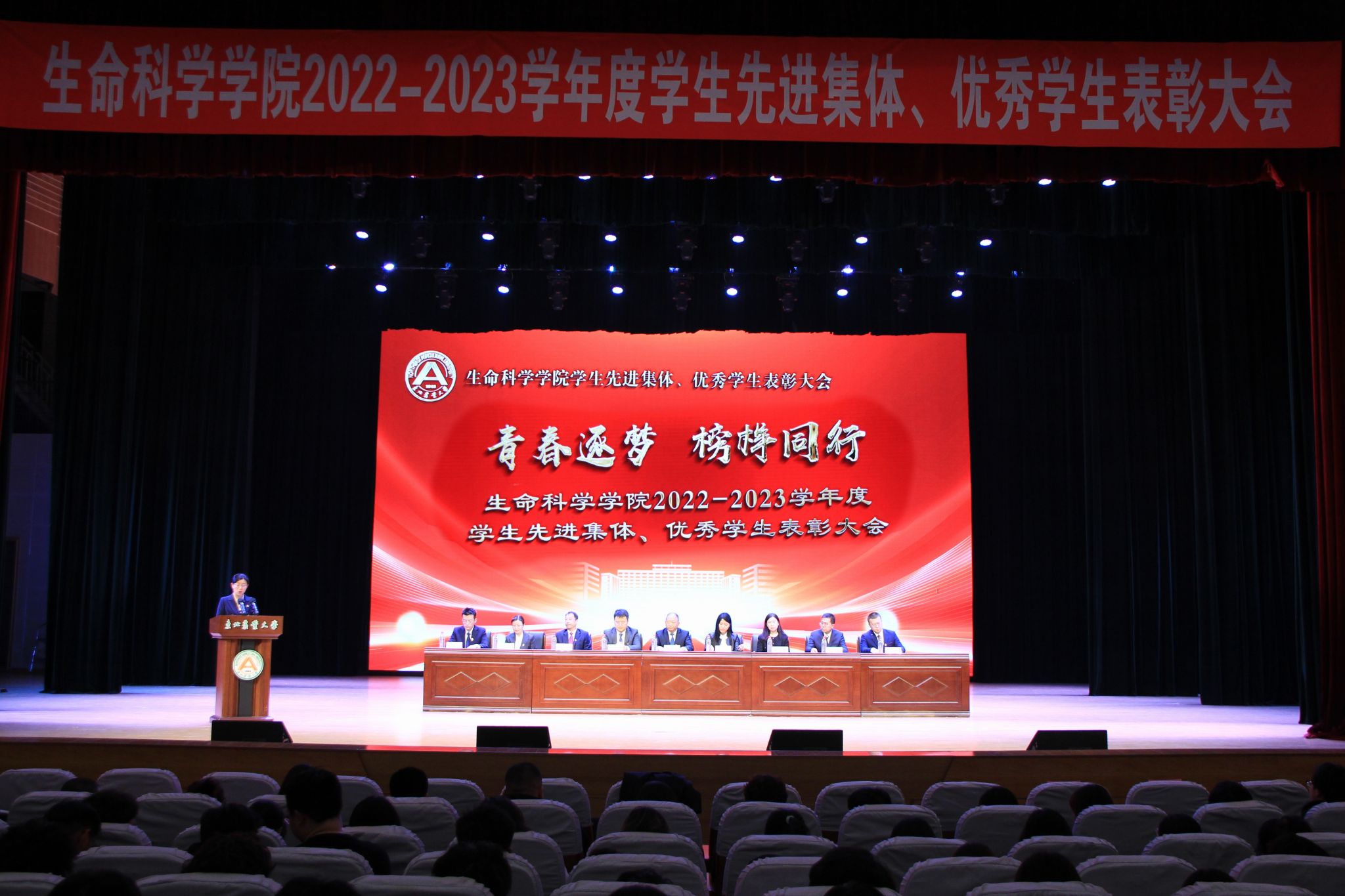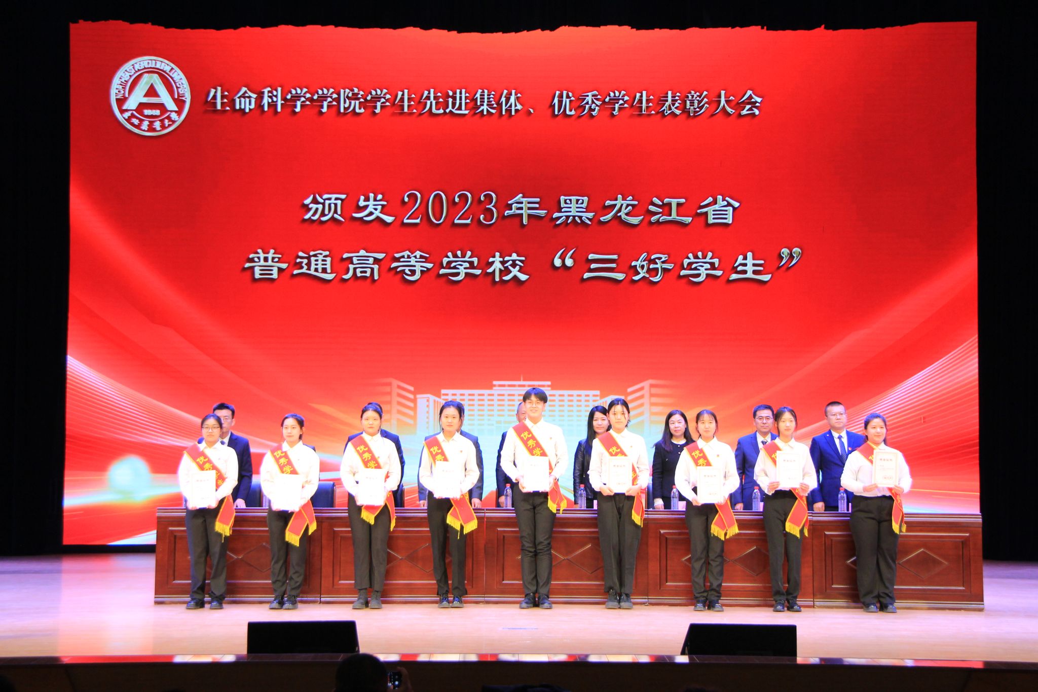 为进一步落实立德树人根本任务,持续加强学风建设,充分发挥榜样示范引领作用,激发全体学生向身边榜样看齐、向优秀典型学习,使优良学风在东农校园蔚然成风,3月27日下午,我院“青春逐梦 榜样同行”2022-2023学年度学生先进集体、优秀学生表彰大会在音乐厅隆重举办。校招生就业处处长宋跃芬,校学生工作部(学生处、武装部)部长于兴业,学院全体领导班子成员,本科生班主任、党支部书记、系主任、部分教师代表及全体辅导员出席大会,非毕业年级全体本硕博学生到场参会,会议由学院党委副书记孙珠红主持。