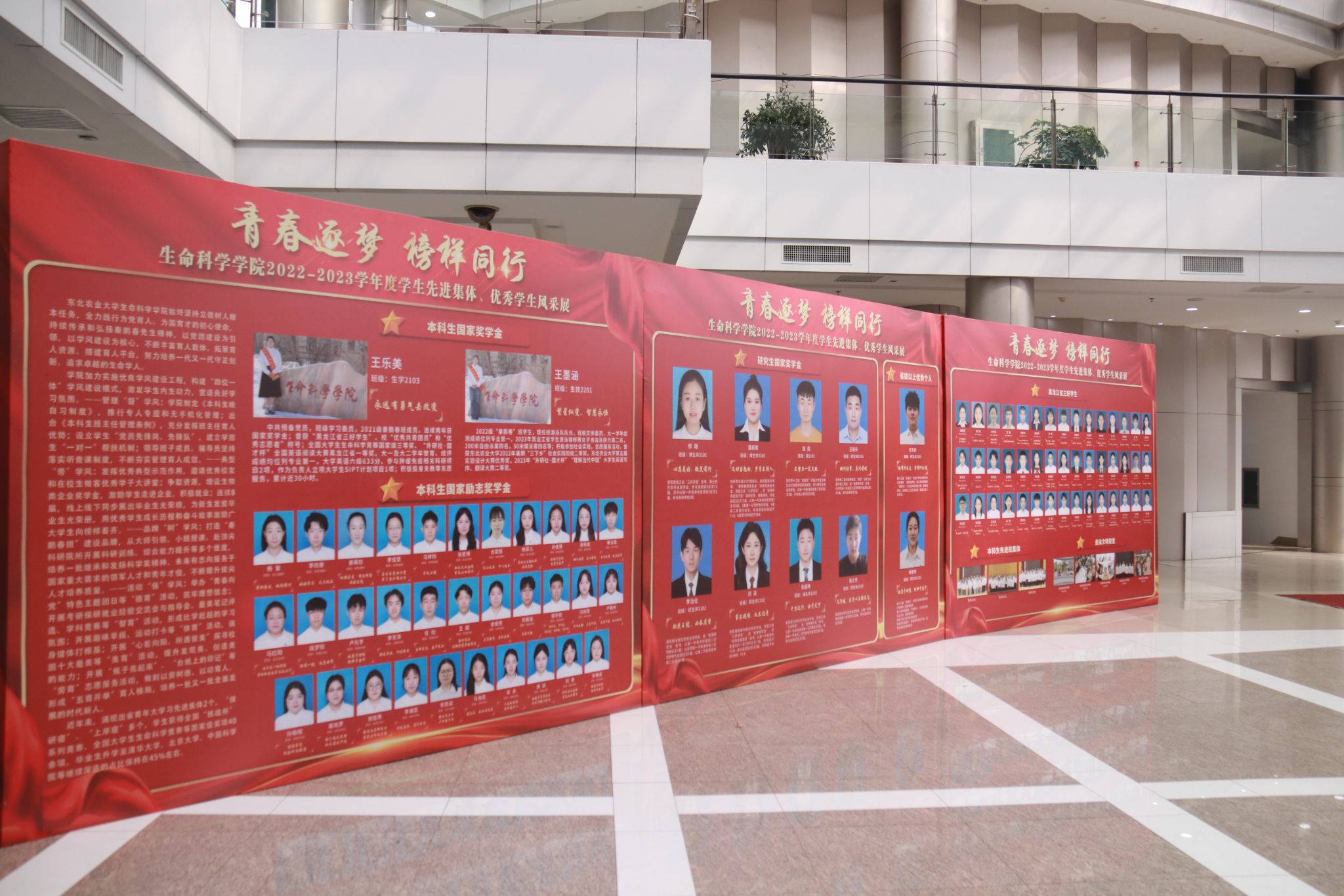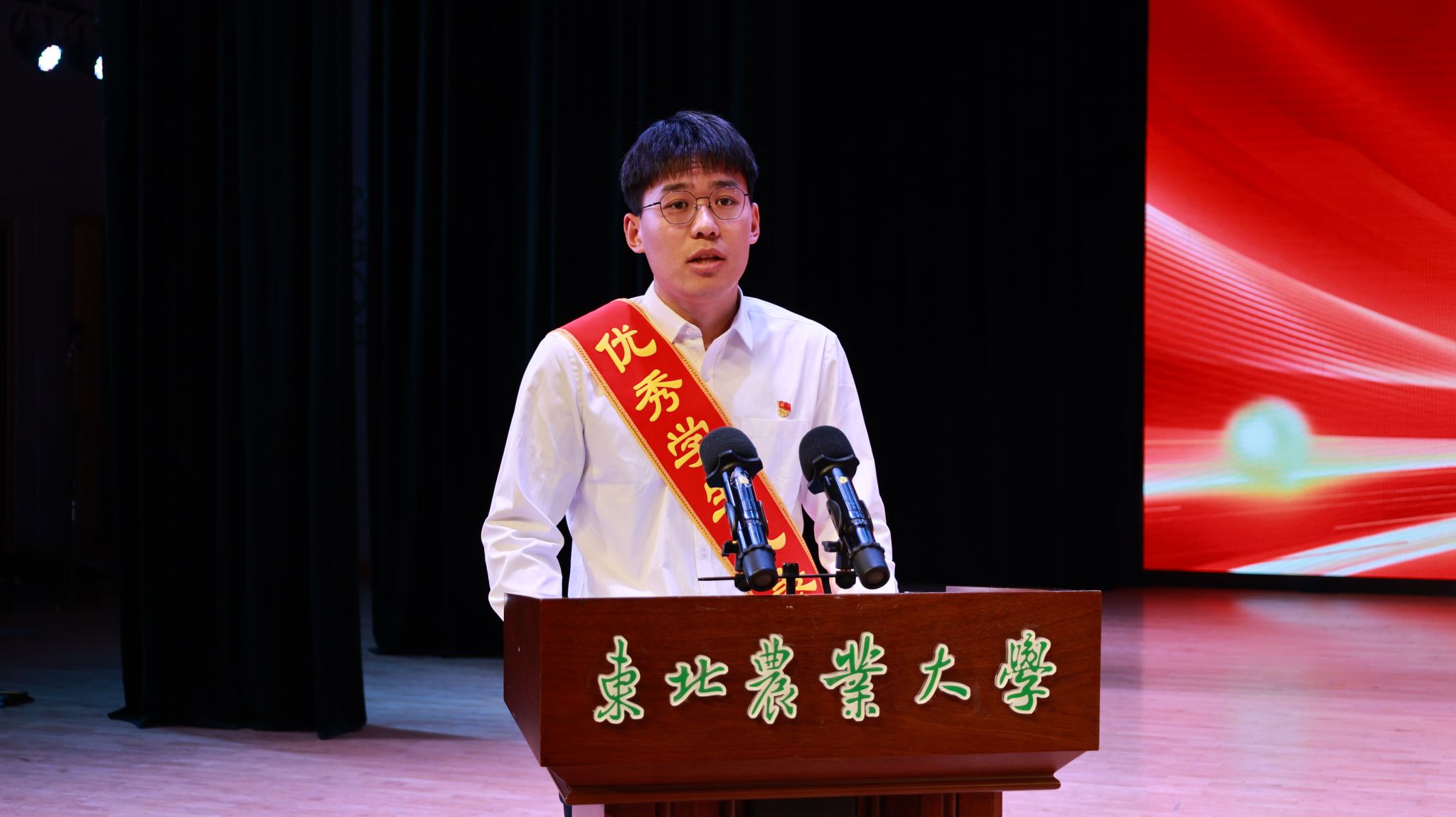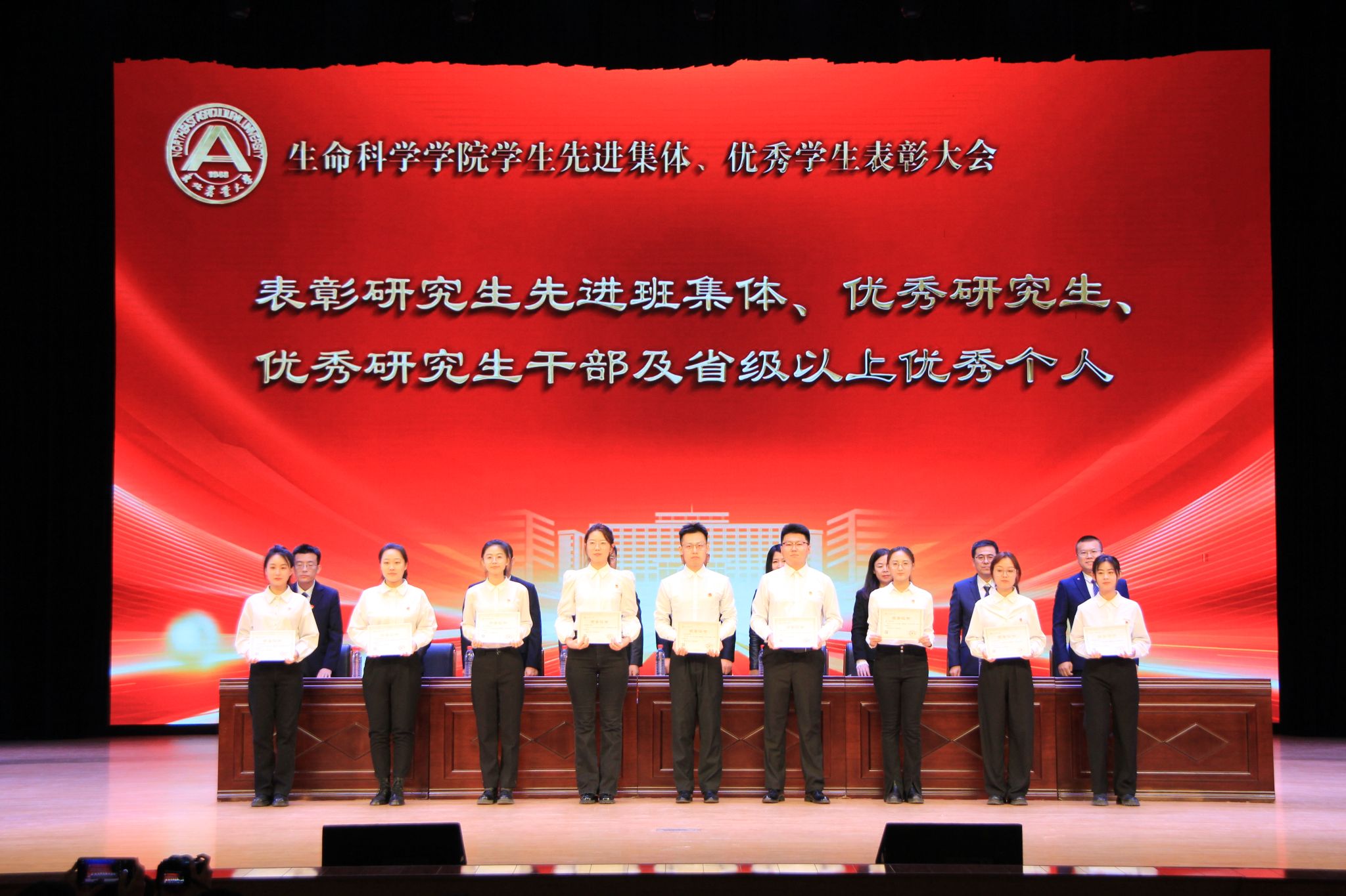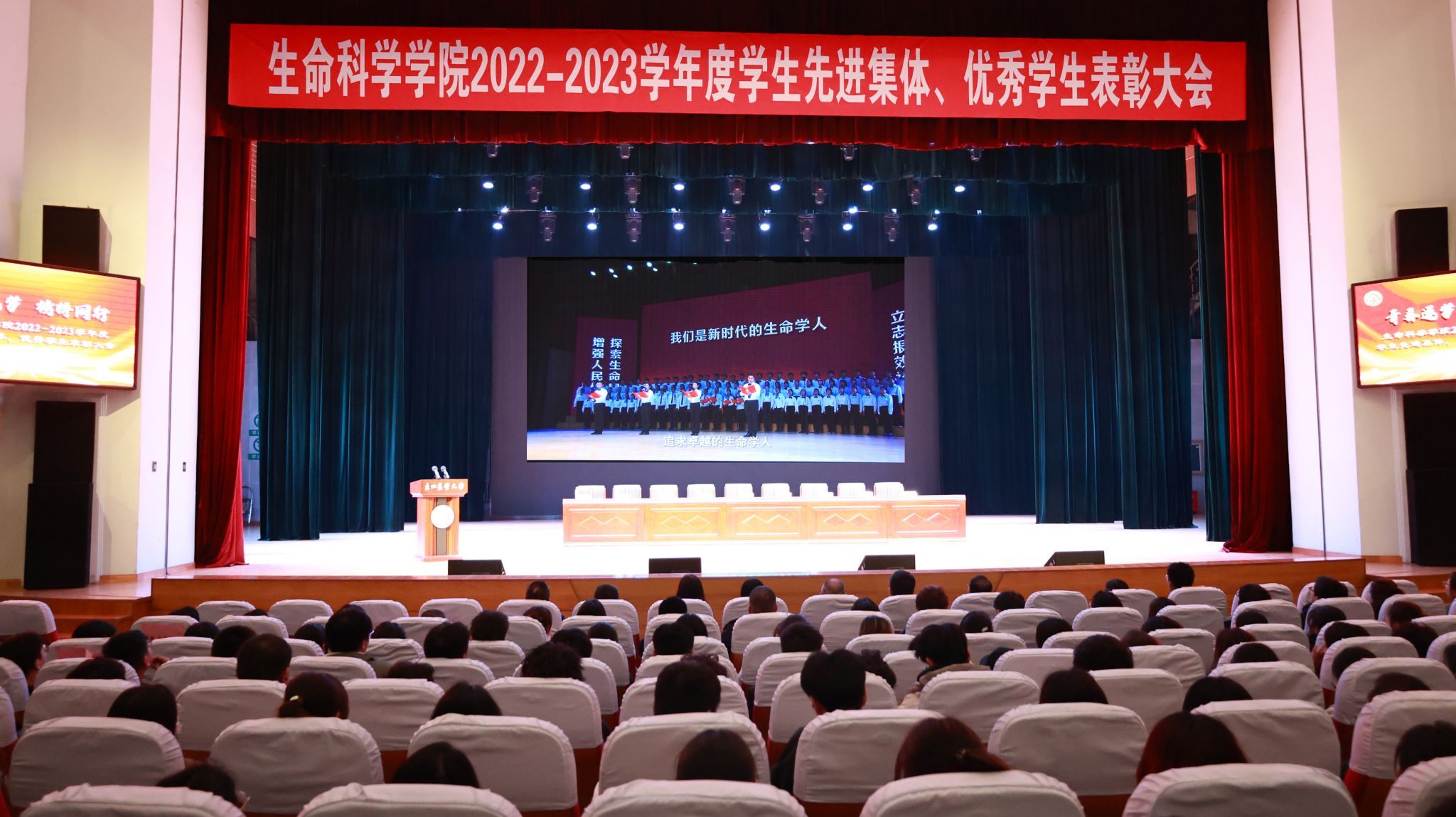 为进一步落实立德树人根本任务,持续加强学风建设,充分发挥榜样示范引领作用,激发全体学生向身边榜样看齐、向优秀典型学习,使优良学风在东农校园蔚然成风,3月27日下午,我院“青春逐梦 榜样同行”2022-2023学年度学生先进集体、优秀学生表彰大会在音乐厅隆重举办。校招生就业处处长宋跃芬,校学生工作部(学生处、武装部)部长于兴业,学院全体领导班子成员,本科生班主任、党支部书记、系主任、部分教师代表及全体辅导员出席大会,非毕业年级全体本硕博学生到场参会,会议由学院党委副书记孙珠红主持。