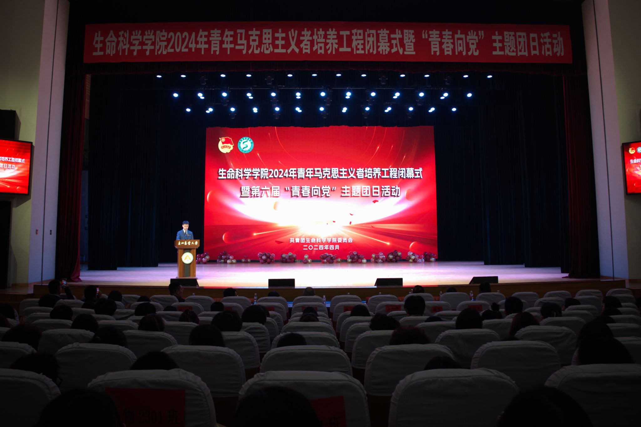 赓续百年精神风貌,书写新时代青春华章。为全面贯彻落实习近平总书记关于青年工作的重要思想,增强学院青年学子的思想政治素养和马克思主义情怀,按照共青团中央《关于深入实施青年马克思主义者培养工程的意见》有关要求,结合校团委工作部署,4月24日,2007so太阳集团2024年青年马克思主义者培养工程闭幕式暨第六届“青春向党”主题团日活动在我校音乐厅举行。校团委书记李卡、2007so太阳集团党委书记施喜军、校团委副书记焦文静、2007so太阳集团党委副书记孙珠红、学院2022级班主任和全体辅导员出席活动,青马工程全体学员与2022级、2023级全体本科生共计800余人参加活动,会议由团委指导教师韩宗伯主持。
