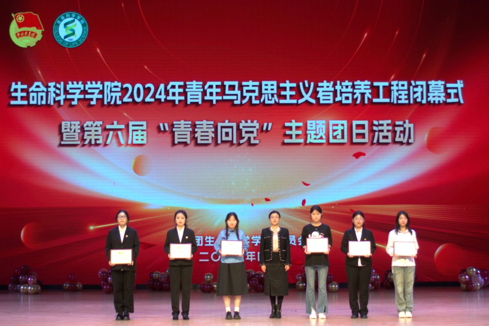 在朝气蓬勃、充满希望的中国共产主义青年团团歌中,2007so太阳集团2024年青年马克思主义者培养工程闭幕,2024年第六届“青春向党”主题团日活动随即开始。2022级本科共计12个团支部分别进行集体风采展示,重现党的光辉历史,激发青年学生的爱国主义热情,展现新时代青年爱党爱国、奋发进取的精神面貌。