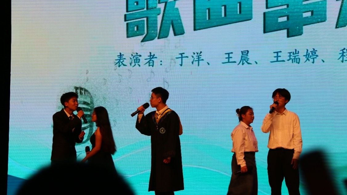 南屏山上的晚钟声,牵动着千里之外的心,校合唱团为即将奔赴山海的毕业生们送上了母校的祝福与惦念。学院舞蹈队用动感舞姿诠释着对未来的无限向往。双宝、吴云舟、纪巍、颜廷胜、胡超五位教师和毕业硕士研究生代表带来的诗朗诵《今朝为别 筑梦起航》,寄托着老师对同学们的深深祝福与殷切期望,莘莘学子在字里行间述说着对母校和恩师的感激与不舍之情。旋律响起,梦想的风帆再次起航,毕业班辅导员韩宗伯与毕业生代表用《送你一朵小红花》传递温暖与希望,道出了师生间的浓浓情意。
