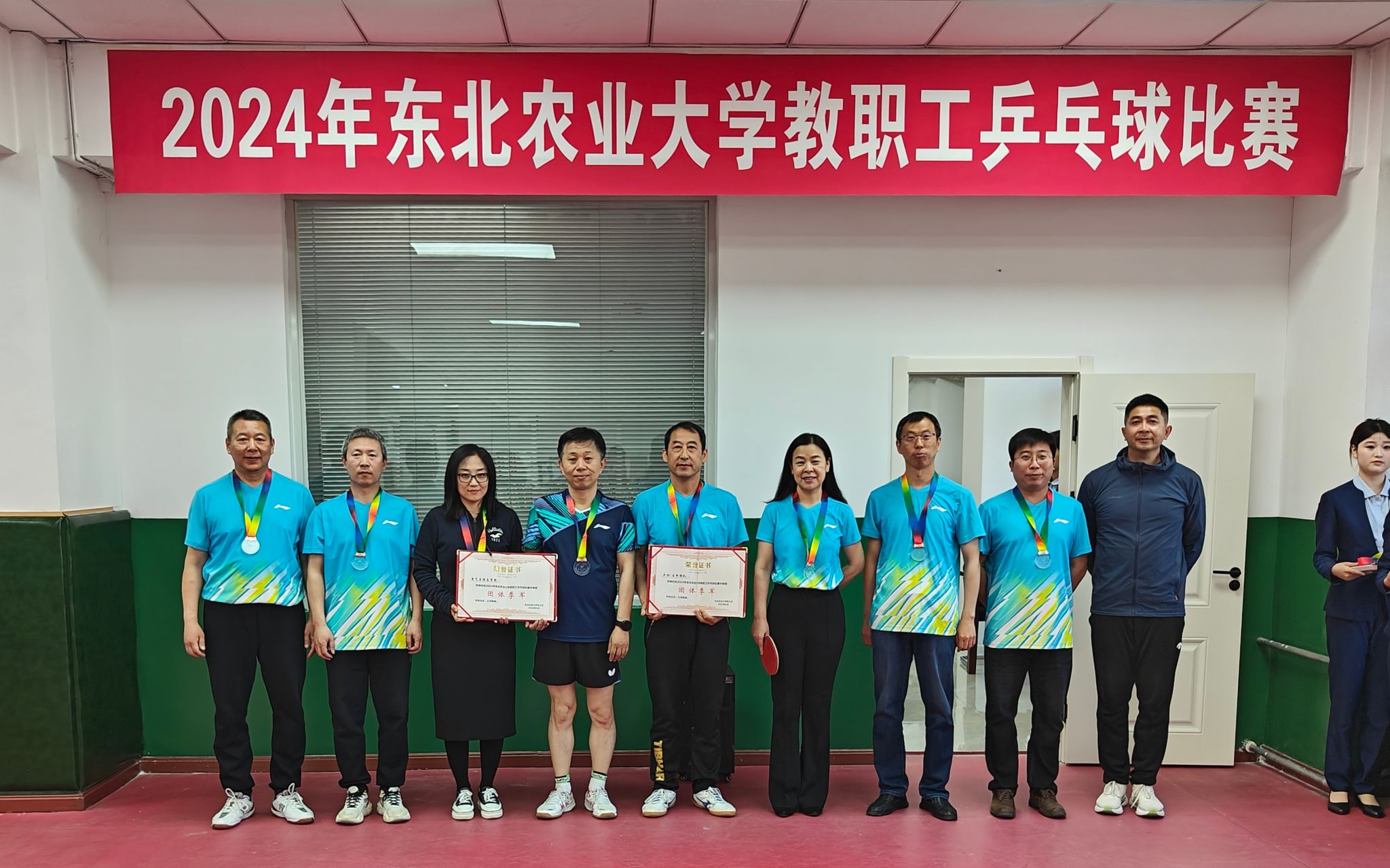 在今年5月的教职工乒乓球比赛中,我院教工的互相信任、配合默契,攻防有序,敢打敢拼。最终,我院荣获团体季军的优异成绩。