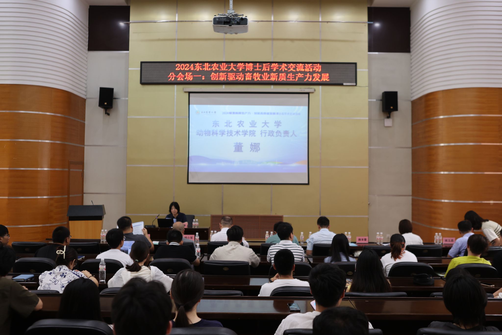 畜牧学博士后科研流动站分论坛以“创新驱动畜牧业新质生产力发展”为主题在动物科学技术学院一楼报告厅举行,报告会由动物科学技术学院行政负责人董娜主持。中国科学院动物研究所、国家杰出青年基金获得者赵建国研究员,西北工业大学生态环境学院、国家杰出青年基金获得者邱强教授,西北农林科技大学动物科技学院、国家重大人才工程入选者杨小军教授,世界五百强-美国Archer Daniels Midland艾地盟集团(ADM)动物营养首席科学家、东农杰出校友朱正鹏博士,吉林农业大学动物科学技术学院副院长、国家优秀青年科学基金获得者李志鹏教授,浙江大学动物科学技术学院、国家优秀青年科学基金获得者孙会增教授,中国农业大学生物学院、国家高层次人才项目计划入选者魏育蕾教授做了专题报告。
