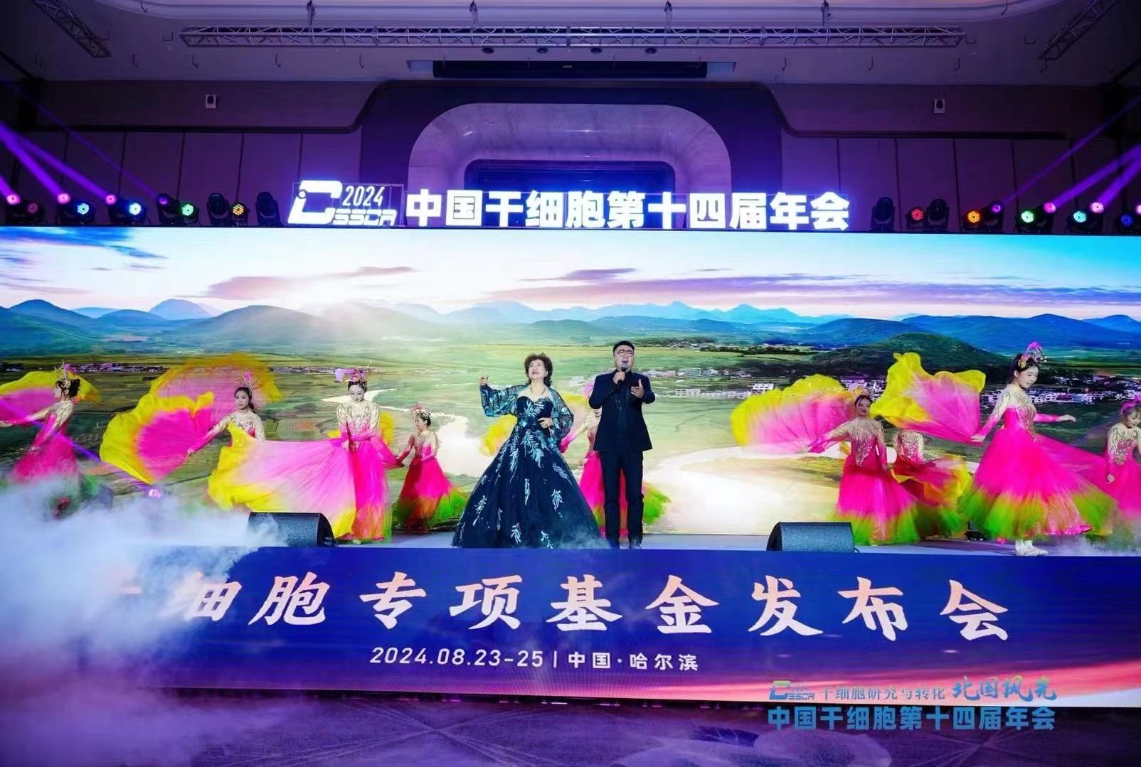 8月24日晚上,中国干细胞第十四届年会举行专项基金发布会,为作出突出贡献的科学家及团队,颁发了干细胞杰出贡献基金、干细胞研究创新基金、干细胞成果转化基金、卓越青年研究员基金及干细胞社会公益基金等奖项。付强、刘忠华应邀出席基金发布会。发布会由干细胞生物学分会委员张愚教授和太阳集团2007艺术学院副院长郭弘主持。太阳集团2007艺术学院的师生献上多个精彩节目,为基金发布会营造了浓厚的艺术氛围。