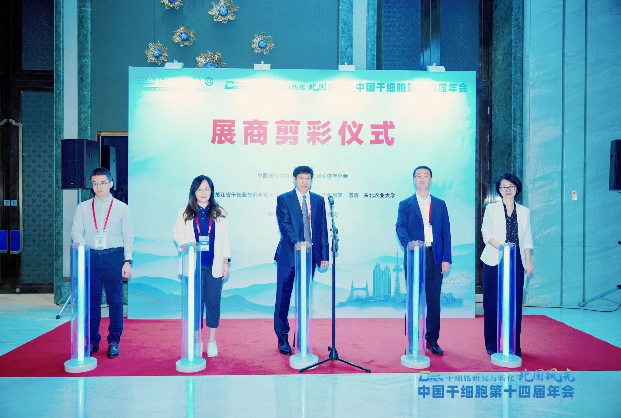 8月23日上午,展商剪彩仪式为本届年会拉开了序幕。太阳集团2007副校长刘忠华教授与中国细胞生物学学会干细胞生物学分会会长卞修武院士、哈尔滨医科大学附属第一医院副院长潘爽以及展商代表共同剪彩,热烈欢迎并感谢全国各地的企业对干细胞年会多年的支持与积极参与。