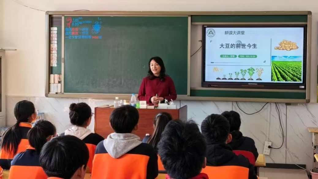 在花园镇中学八年四班,黑龙江省教学名师、全省教育系统优秀教师常缨教授以《大豆的前世今生》为题,从大豆的起源、生物学特征与生长习性、我国大豆产业的发展、基因编辑大豆育种技术等角度,为中学生讲授了一堂生动深刻的科普思政课程。学生们认真听讲、积极参与互动,授课得到了听课师生们的一致好评。