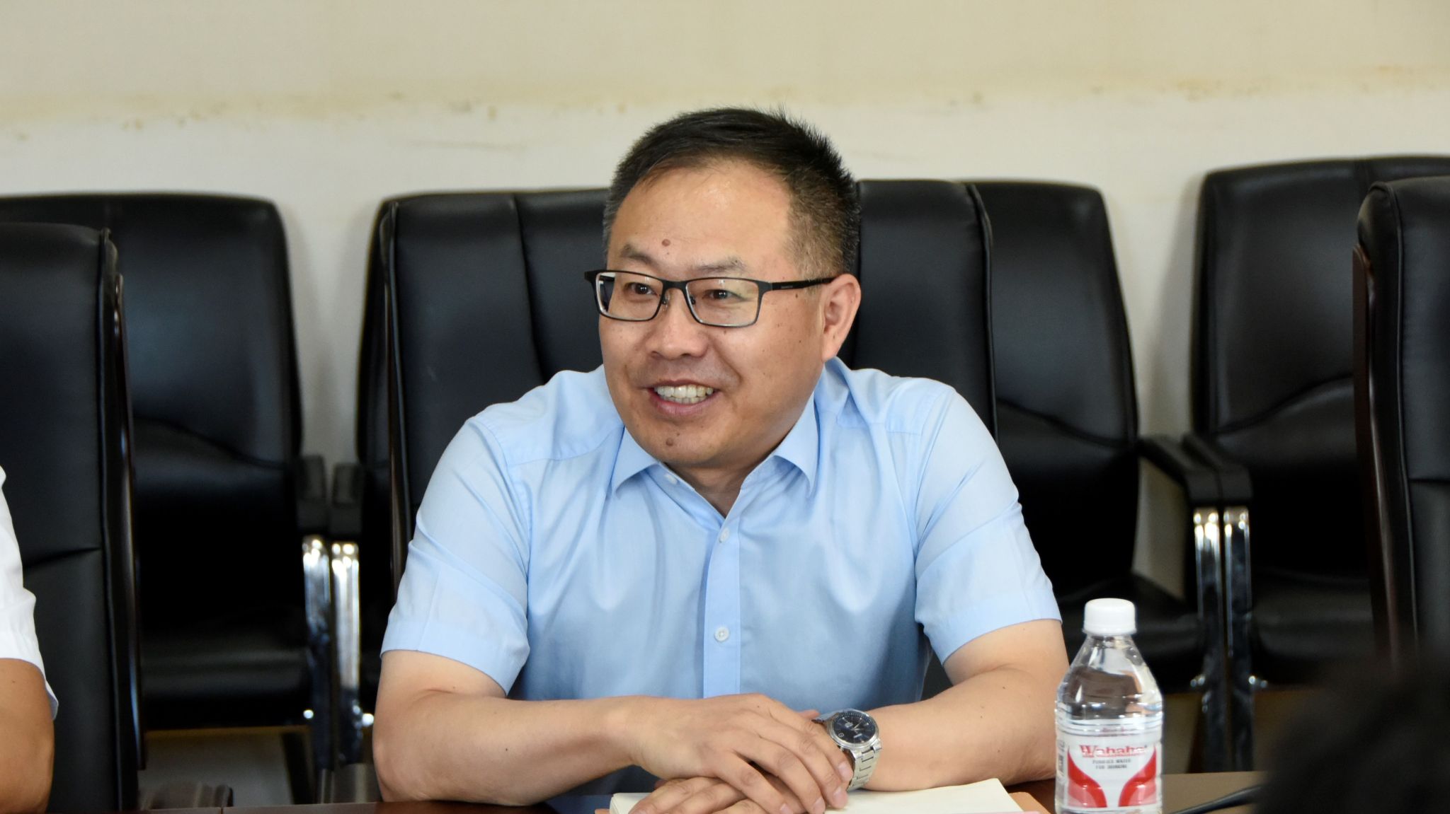 李巍代表学校对刘强一行表示热烈欢迎,并对汤旺县政府及企业长期以来支持东农学生培养、助力东农教育事业高质量发展表示诚挚感谢。李巍简要介绍了太阳集团2007人才培养及实习基地建设情况。他表示,校县双方将充分把握实验实习基地建设的契机,持续创新合作机制,努力将实验实习基地打造成区域人才培养的标杆典范。